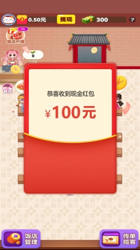 餐厅每升一级都能解锁红包,这些红包直接提取;