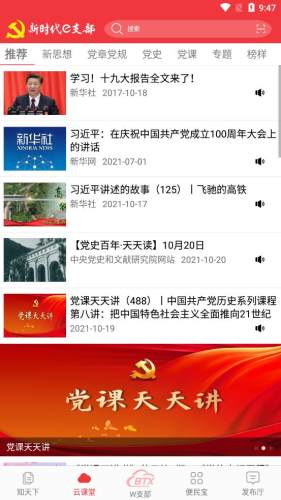 用户可以搜索感兴趣的党建1新闻,非常的快速方便;