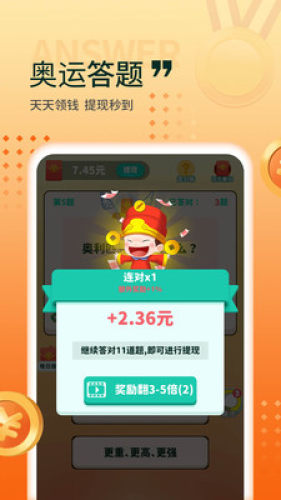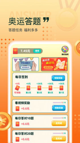 答题变富翁是一款以奥运知识为主要题库的答题软件,奥运知识大比拼,丰富的题库,让你对奥运知识了如指掌,丰富见闻,向冠军金牌冲刺!不同的类型题库需要用户去不断的挑战,非常有趣。