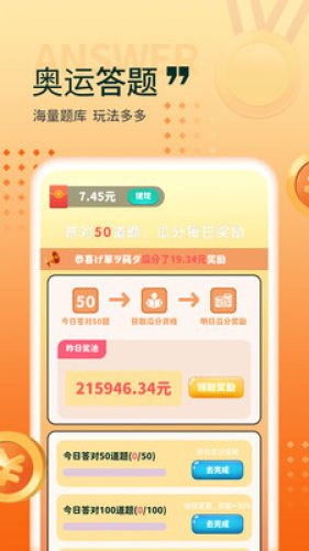 答题变富翁app是一款十分实用的趣味答题软件。软件为用户提供了超多的趣味题目,用户可以在这里一边答题一会学习到更多的新知识,丰富见闻,拓展知识面,还可以赢取现金红包奖励。