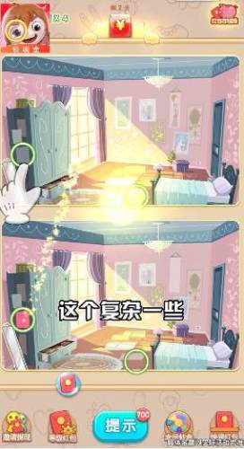 找茬太考验眼力,找不到的话就点右边的提示吧。