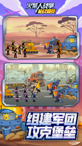 火柴人战争枪战精英,火柴人战争题材全新射击新作。这里以现代战争为主,选择采矿兵和步兵等兵种搭配出战,采集矿产资源,解锁强大武器装备,升级军团出击,享受火柴人战争精彩。