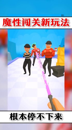 一款画风非常卡通的解压游戏,在游戏中你可以自由的挥舞着你的皮鞭,皮鞭的种类有很多,你只需要挥动皮鞭尽情的抽打面前的囚犯就可以,到获得了电力皮鞭时,抽打会触发闪电,玩法非常容易,游戏的音效非常的解压,打在囚犯身上啪啪作响,这款游戏非常适合打发时间。