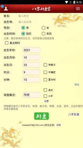 (5)支持八字反查、以及分析模式,可动态排流年流月流日流时,支持八字原局五行打分