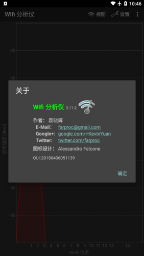 在软件首页就能看到所有Wifi信号的强度以及它们所在信道的曲线图示,很直观,数据检测和刷新很顺畅。