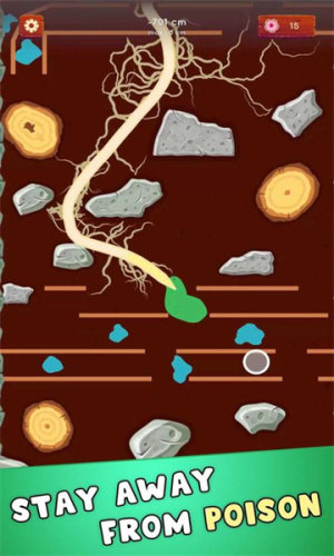1、画风卡通、玩法治愈的植物生长模拟游戏,化身植物的根部。