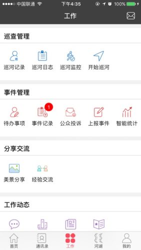 应用实现我的河湖,河湖巡河(使用在后台中运行的GPS定位系统,将会降低电池寿命),上报事件,一河一档等功能,有效摆脱传统巡河的限制。