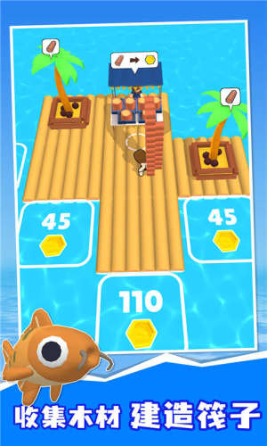 木筏战争手游是一款极为卡通风格的木筏冒险游戏,建立自己的岛屿,不断的收集各种资源,建造房子,解锁求生技能,小心鲨鱼攻击你的木筏哦,完成各种闯关体验,来加入全新木筏战争生存挑战。