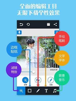 ① 精美的滤镜、动画、相框、字框等多种效果