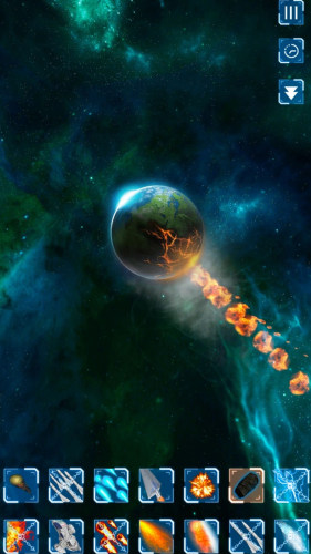 整体画面简洁、逼真而细腻,精准的画面造型与简洁的武器图标形成了鲜明的对比,回观整体操作而言,游戏操作简单易上手,每种破坏星球的武器都可以呈现出非常逼真的破坏效果,从破坏表面到穿透地核,将郁郁葱葱、蔚蓝的地球毁灭成一边昏暗,地核冒出的死星,只需要玩家点点手指即可实现。得益于游戏本身极高的还原度优势,玩家的每一个操作都会对星球造成不同的伤害,每一次伤害都会在星球上完美的呈现出来,细致到从地标的破坏到地核的摧毁。