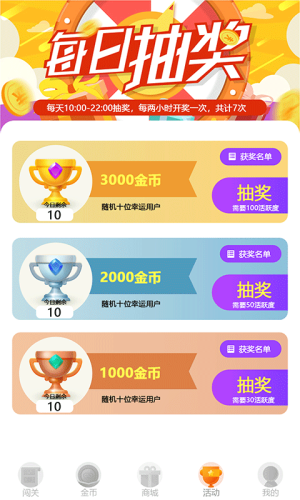 1、实用的趣味软件,用户通过累计APP活跃度,参与日常答题,挖掘等形式可获得金币;