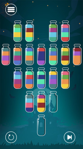 这是一款十分有趣的颜色分类应用,你只需要点击试管,就能将五颜六色的水倒出,动动大脑,试着将所有试管装满同颜色的水吧!
