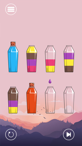 4、尝试将不同色彩的水进行兑换,变化其中的颜色,完成更多的挑战。