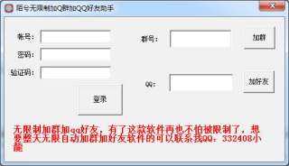 有时候因为想加别人好友却因为有验证问题,那么怎么才能无限制加别人QQ好友呢?试试这款陌兮无限制加Q群加QQ好友助手吧!这款软件是一款绿色小巧使用方便的无限制加群加好友工具,有了这款软件,不管别人设置了什么验证问题都能一键加好友了,欢迎下载使用!
