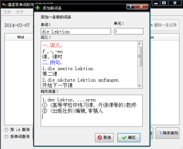 使用德语背单词软件请先建立自己的词库,然后再使用。此外德语背单词软件还提供了一个词库编辑器,用户可更加自由编辑生词库!