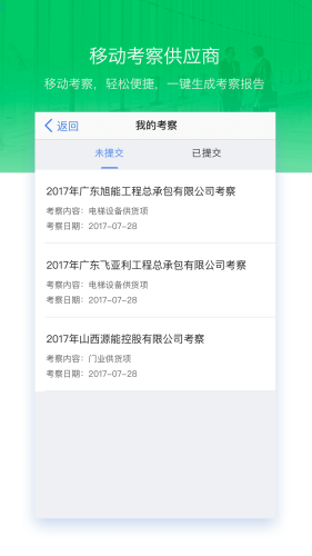 极速考察,支持移动考察合作供应商,方便各种事务的合作沟通;