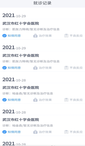 1.在悦动患者app中,为用户记录了每一次的详细就诊记录