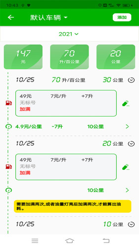 汽车记油耗app是一款专业的汽车油耗记录管理平台,能够帮助用户记录每天的油耗情况和行驶路程,统计每个月的油耗,折算每公里消耗费用,让你能够详细了解使用情况。