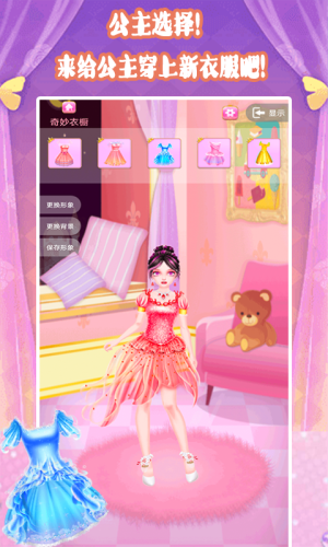 可以任意选择换背景,让公主在不同的房间里跳舞吧!