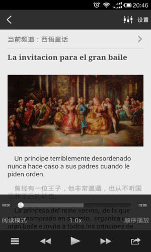 - 起床闹钟功能,每天起床为您播放当天最新的西班牙语听力