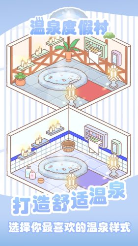 温泉度假村是个非常清新有爱的放置休闲游戏,为顾客们打造各种主题元素的温泉,有公共区域设计,有室内温泉,让所有人都能够享受于此,将温泉文化推介到全国。