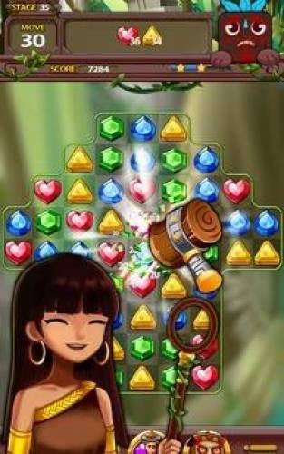珠宝粉碎神庙是一款很好玩的消除游戏,在森林里有着古代的遗迹,遗迹中可以看见各种宝藏,你需要消除相同的宝石方块才能得到一切,快来下载游戏吧。