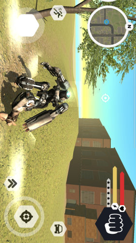 这是一款超级好玩的动作游戏。邪恶的机器人在危害这座城市的和平!身为机器人英雄的你要挺身而出,利用自己优秀的武器和变形能力来打败他们守护城市和平!现在,做好准备,拿起你的武器装备,消灭城市中邪恶的机器人,成为这个城市的英雄吧!