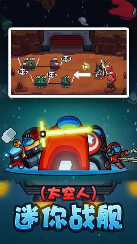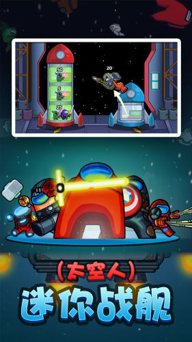 迷你战舰,一款太空人大乱斗游戏,游戏分为太空人与冒名顶替者两个阵营,不同皮肤技能解锁,顶替者隐藏在太空人当中,仔细甄别找出所有顶替者,启动飞船。