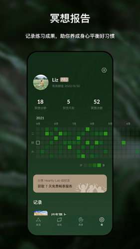 打开引导语,让自己进入冥想世界,同时能够记录下自己练习的点点滴滴,见证自己的成长。