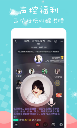 咪兔app是一款语音聊天交友的社交app,在咪兔遇见懂你的人,这里是校花校草、声控、玩咖汇集地!24小时不间断畅聊,随时和颜值逗比、达人、一起实时互动,告别孤单!