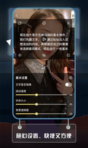 可随意移动提词面板,控制面板大小,自动调节滚动速度,轻轻松松录制视频。