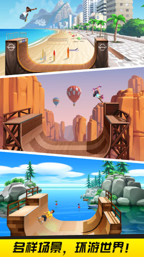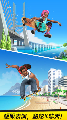 5、丰富的场景等你来解锁,操控滑板来进行精彩的竞技,十分过瘾