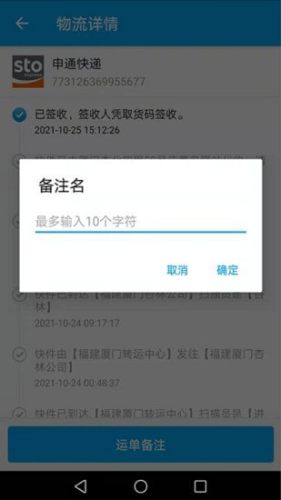用户可手动输入物流单号,软件智能判断归属物流公司,并进行物流单号进度查询;