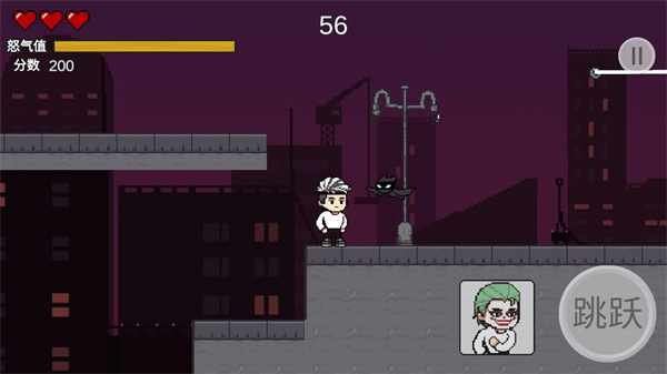 1、首先,打开游戏,你可以通过点击跳跃键来消灭那些飞来的蝙蝠。