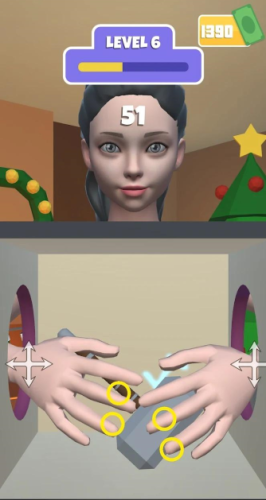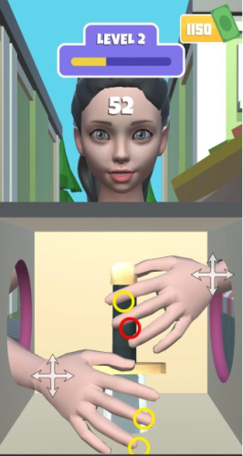 3、控制女人的指尖,移动到正确的位置后会显示绿色的小圈圈。