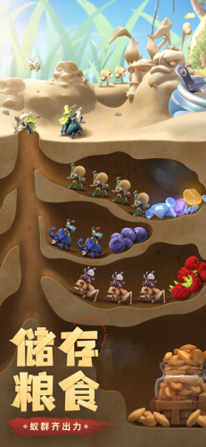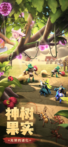 《蚁族崛起:神树之战》讲述了人类庭院中,受神树祝福的蚂蚁觉醒了属于自己的文明,并形成了各自的阵营势力,为了争夺神树所孕育的生命之果,进行着无尽的激烈战斗的故事。玩家作为一个族群的统帅,通过招募英雄,建筑蚁巢来壮大自己的实力,以此守护族群,开疆拓土,成为庭院的霸主!