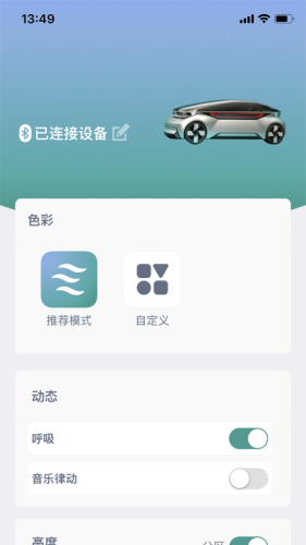 智能氛围灯app,车载氛围灯设置软件,多种模式然你选择,轻松自定义亮度、色彩,操作简单,在线调节,一键连接设备,让车载氛围灯控制更简单、更轻松。