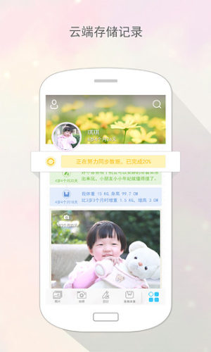 1. 随身携带的日记本,覆盖安卓、IOS,随时随地用照片和文字记录宝宝成长点滴;