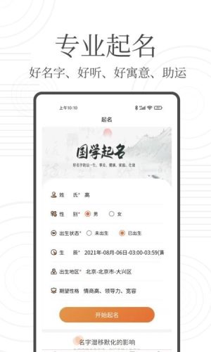 国学起名宝app是一款非常不错的宝宝起名软件,能够依照传统文化为宝宝起名,汇集了多种姓名相关的服务,让你宝宝的名字更有特色,给你带来最好的起名服务。