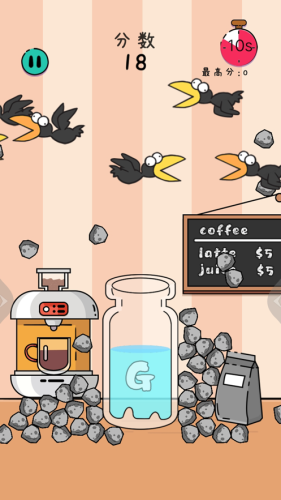 1、操作乌鸦投掷石头进水杯,使水位达到乌鸦能喝到水的高度,才算顺利的过关。