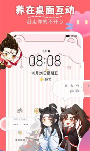 把自己喜欢的人物养在手机桌面,会卖萌随机互动,上下跳动和爬墙,左右走动,超萌可爱。