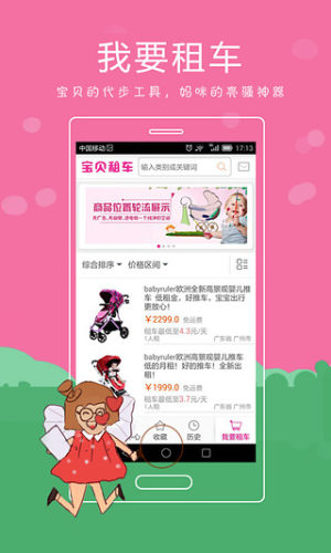 宝贝租车,极富创意,采用目前流行的模式,打造一个婴儿车出租平台。官方保障,真正靠谱;最新上线一元租一年活动,用最低的价格将好车租回家。多家诚信商家入驻,多重认证,品质保障;各类丰富的车型,满足您和孩子的需求。