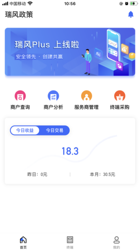 瑞风Plus是专为广大服务商制作,软件拥有商户查询,商户分析,终端管理,服务商管理等等功能服务,可以帮助服务商更好的经营管理。