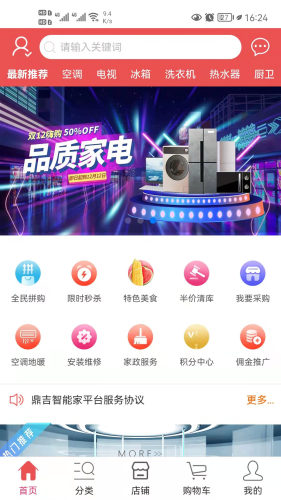 鼎吉智能家app是一款自营类型的电商平台,主营项目有家用电器、暖通、技术服务等,能够打通线上线下沟通环节,线上购物线下送货上门包安装,让你有更好的购物体验!