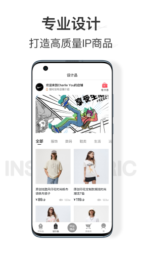 2、3D专业设计,可使用3D设计引擎将图片与商品进行融合创作DIY商品进行购买;