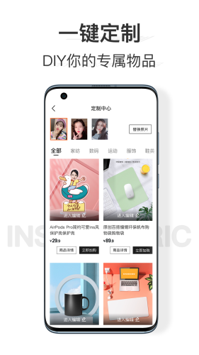 1、DIY快捷定制,可将图片与商品进行融合生成DIY商品进行购买;