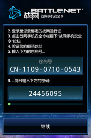 下载战网手机安全令,并在您的手机上完成安装后,点击继续进入下一步。