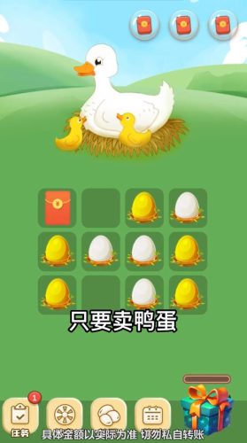 养个小鸭游戏好玩吗,其实这个游戏非常的简单呢,只要放置就能让你的小鸭子生蛋,合成相同颜色的鸭蛋能够让它们升级,高级鸭蛋能够兑换更多的现金红包,边玩还能边赚钱,快来下载这个养个小鸭游戏吧。