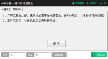 4.在神战赤壁辅助工具中“启动”“神战赤壁 一键45级 急速稳定”