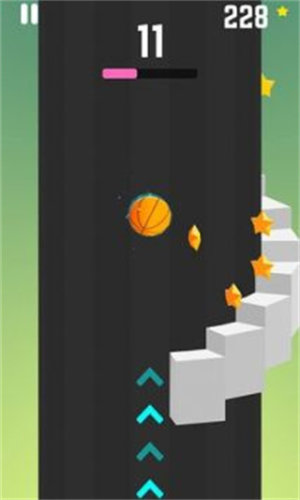 3、一键式点击式控制篮球,篮球不断跳跃,游戏中还会有各种陷阱,需要玩家小心。
